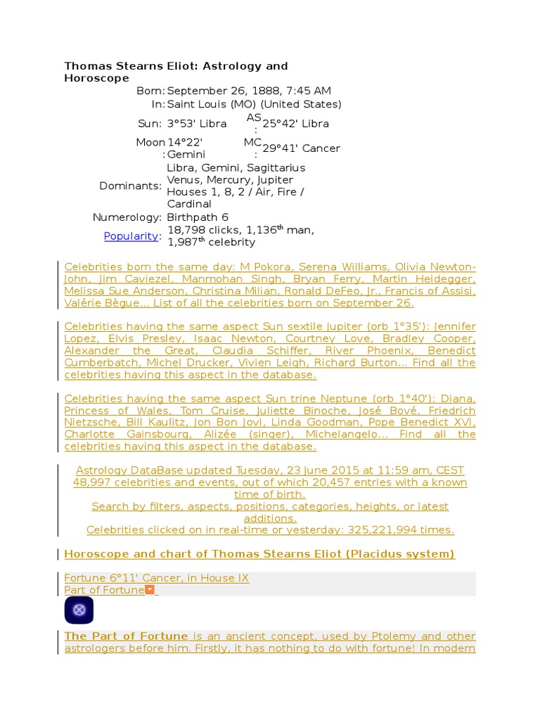 Thomas Stearns Eliot Astrology And Horoscope Popularity Planets In Astrology Superstitions Arsenal Vs Liverpool Community Shield